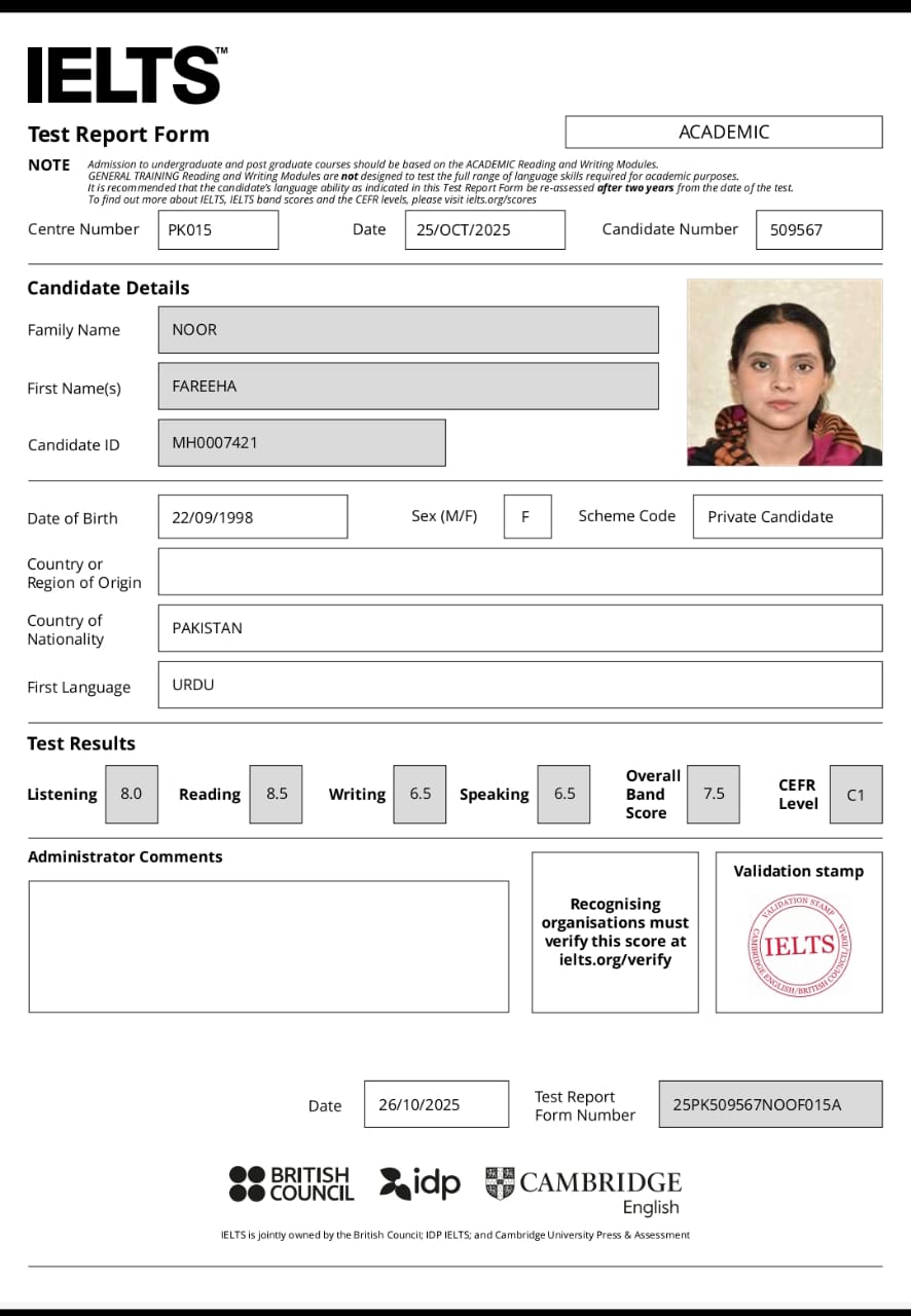 My Experience at this place was beyond words. The way Hashmi sir teaches and the way he makes his students to perform their level best is the top tier quality of this institute. I've got 7 bands in my test and that's a proof of their dedication and my hard work.